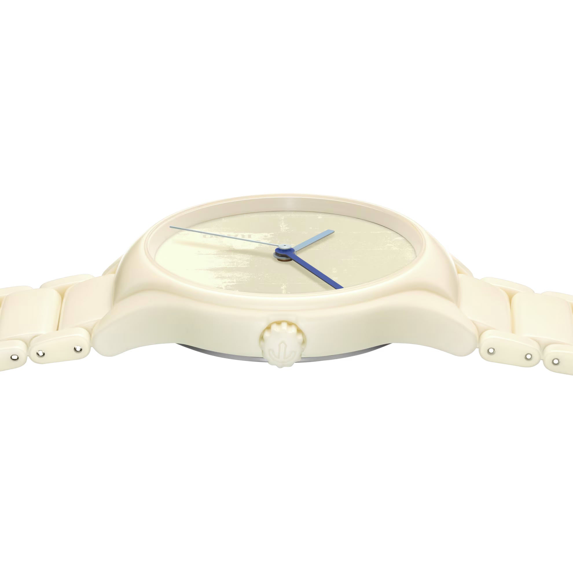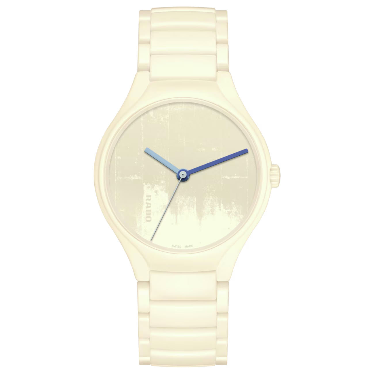 霧面BLANC IVOIRE(4320B)色調的高科技陶瓷鍊帶與一體成型錶殼,完美呼應現代建築之父勒·柯比意(Le Corbusier)《建築色彩學》中的經典色彩,再次印證Rado作為「材質大師」(Master of Materials)的地位,同時也確保佩戴舒適性。 弧形藍寶石水晶鏡面與高科技陶瓷使腕錶歷久彌新。雙面防反光塗層讓錶盤細節清晰可見,錶盤以雷射雕刻描繪法國馬賽「光輝之城」(La Cité Radieuse)混凝土表面的抽象紋理。Rado標誌垂直設於8點鐘位置。指針巧妙運用《建築色彩學》中的其他顏色,形成鮮明對比,包括OUTREMER MOYEN(32021)、BLEU OUTREMER 31(32020)與OUTREMER PÂLE(32023)。 腕錶搭載Rado R763型自動機芯,具備80小時動力儲存及Nivachron™抗磁游絲。機芯經五個方位測試和調校,超越標準要求,確保穩定可靠與精準走時。