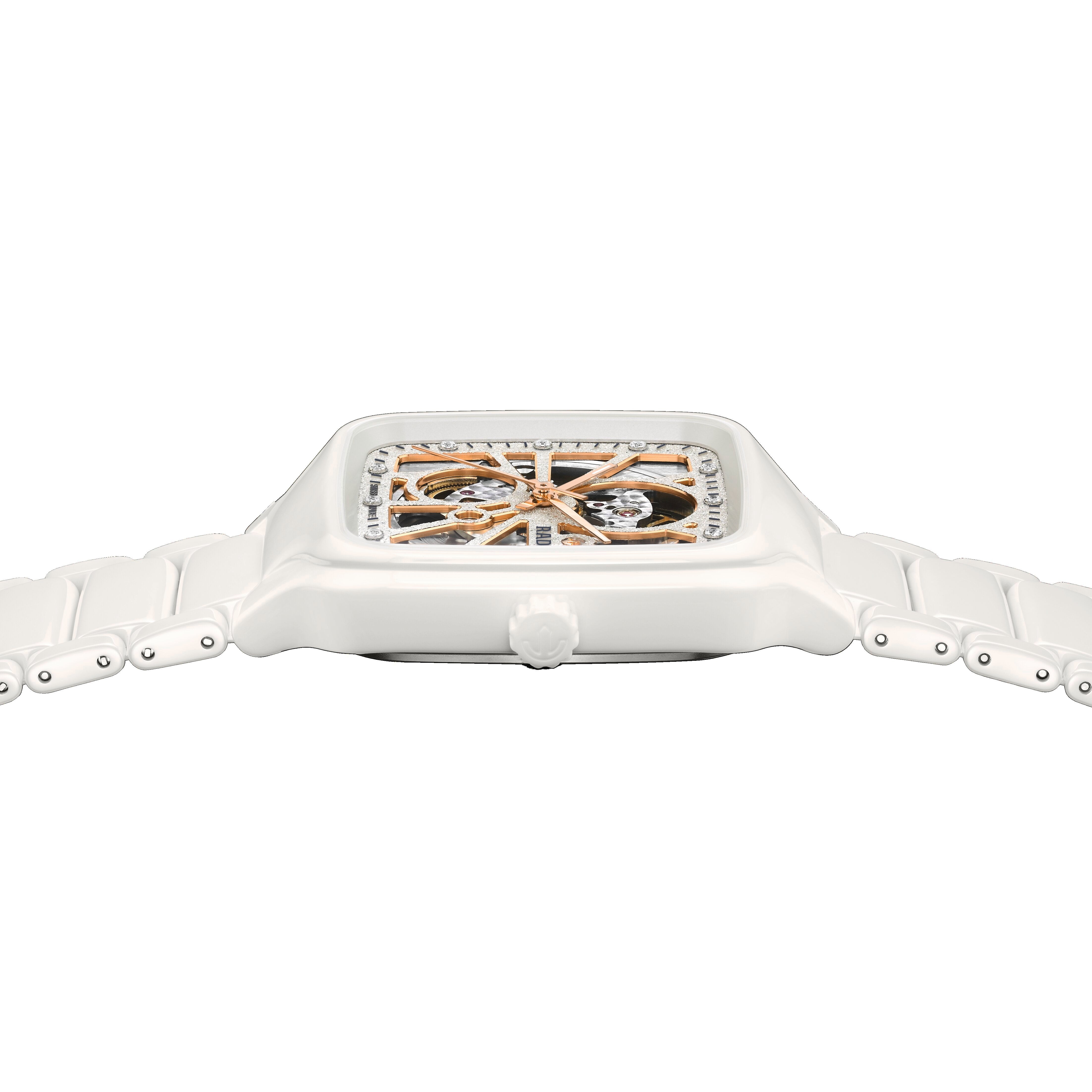 RADO 雷達錶 TRUE Square 真我方形系列白漾陶瓷鏤空自動機械腕錶 38mm R27073722