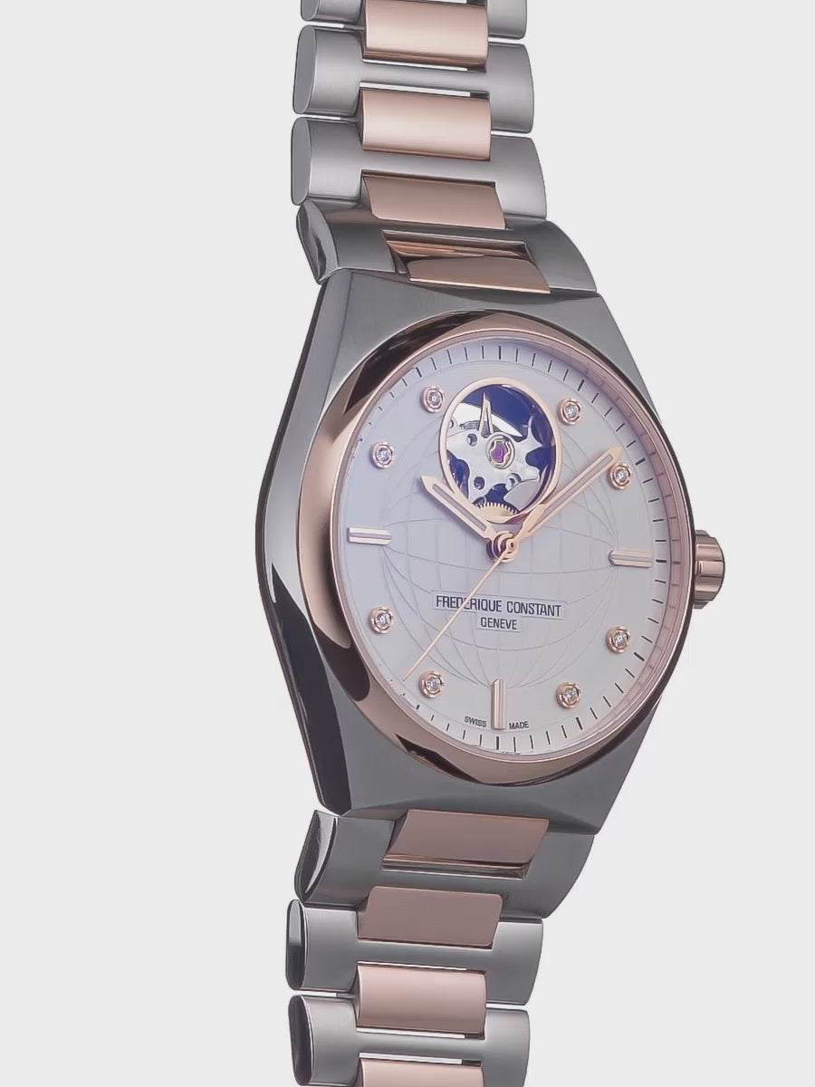Frederique Constant 康斯登 HIGHLIFE 心跳鏤空玫瑰金真鑽機械腕錶 34mm FC-310VD2NH2B