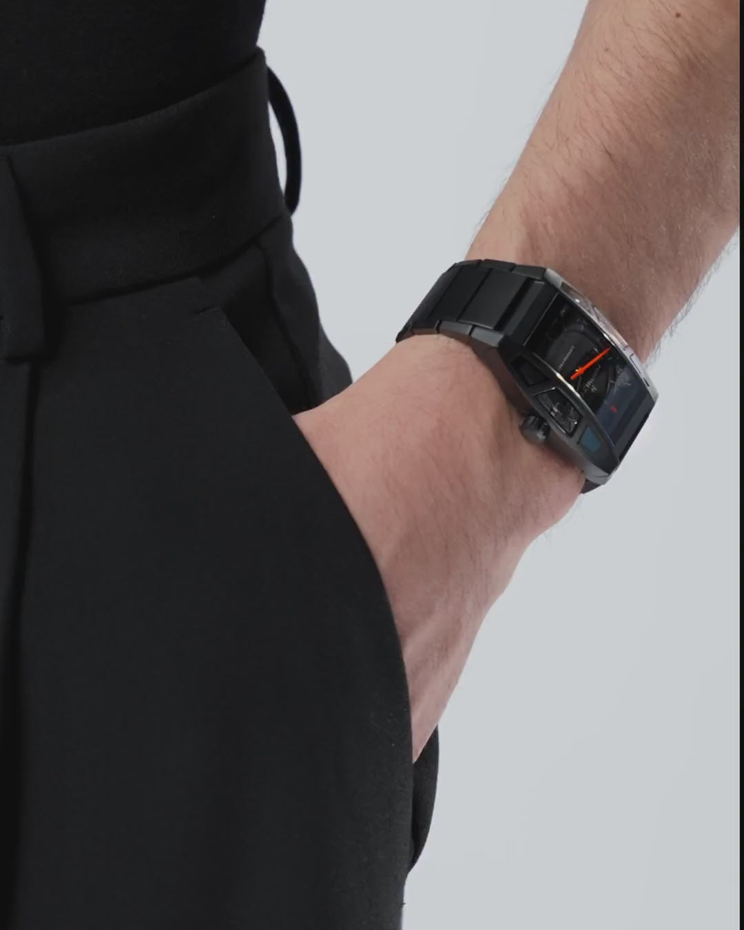 探索美國經典系列Boulton Death Stranding 2限量版腕錶。漢米爾頓與小島秀夫和新川洋司合作,打造出這款36x48毫米黑色PVD塗層鈦金屬腕錶,融合《死亡擱淺2(Death Stranding 2)》遊戲中的未來主義風格。腕錶以簡約時尚的黑色錶盤搭配醒目橙色秒針,同時鑲嵌七顆藍寶石水晶,光影流轉,盡顯璀璨。腕錶具備80小時動力儲存,僅限量發行2,000枚,是遊戲玩家與腕錶愛好者的必備之選。 該款腕錶將於2025年6月26日起開始發售。