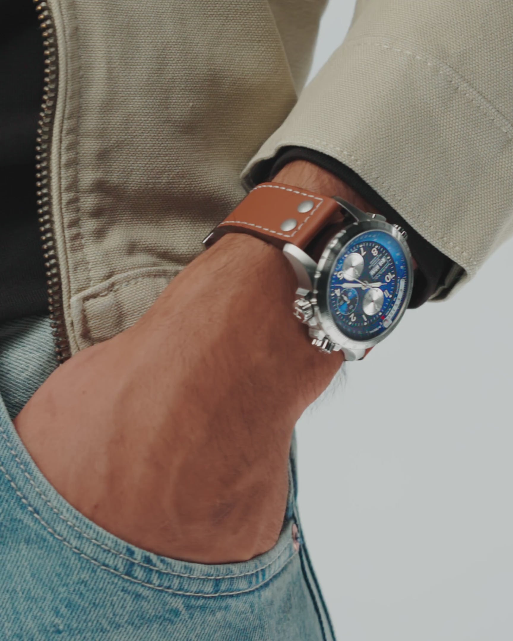卡其航空系列X-Wind Day Date自動上鍊計時碼錶專為飛行員設計,以大膽前衛的全新面貌橫空出世,伴你隨時展開冒險之旅。這款高性能腕錶具有矚目的藍色錶盤、內部旋轉錶圈和60小時動力儲存,搭載H-21機芯,專為勇於探索人生冒險、又講求精準與品味的人打造。