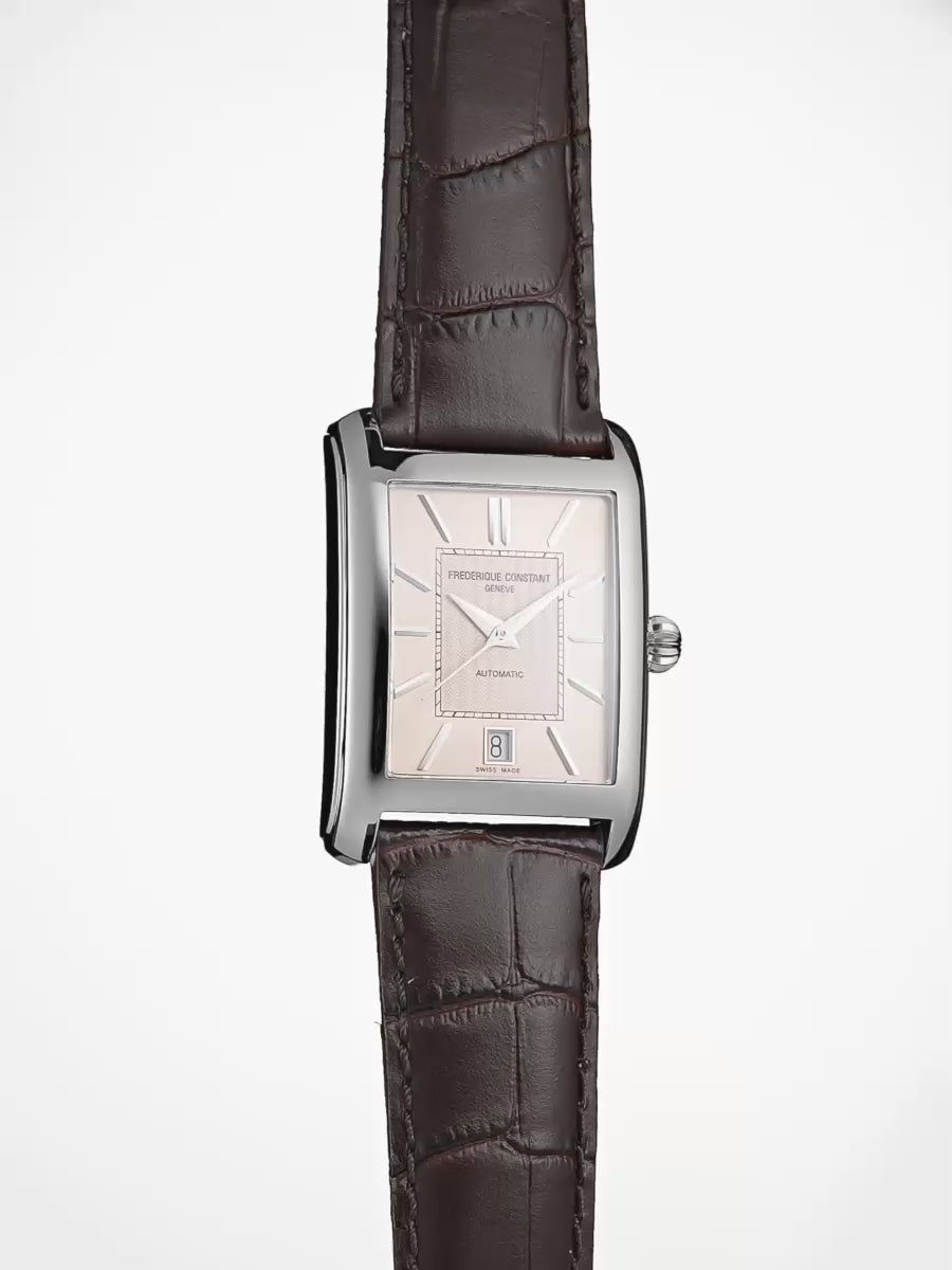 Classics Carrée Automatic 自動腕錶展現優雅的 1920 年代復古風格,喚起那個時代精緻社交場合的迷人記憶。同時融入專屬於 Frederique Constant 的細節特色,讓此錶更具品牌印記。藉由重現這款經典的方形設計,品牌再次強化其在經典製錶領域的地位。