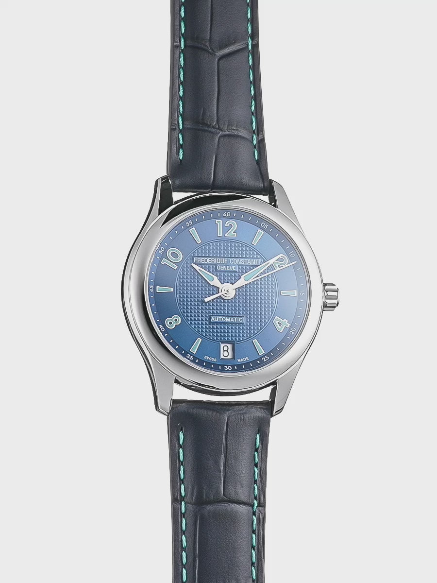 Runabout 自動腕錶搭載 FC-303 自動機芯,這款瑞士製造的機芯配備26顆寶石,每小時振頻達28,800次,並提供約38小時的動力儲存。機芯被置於具備100米防水性能的錶殼內,完美適合划船等水上活動。