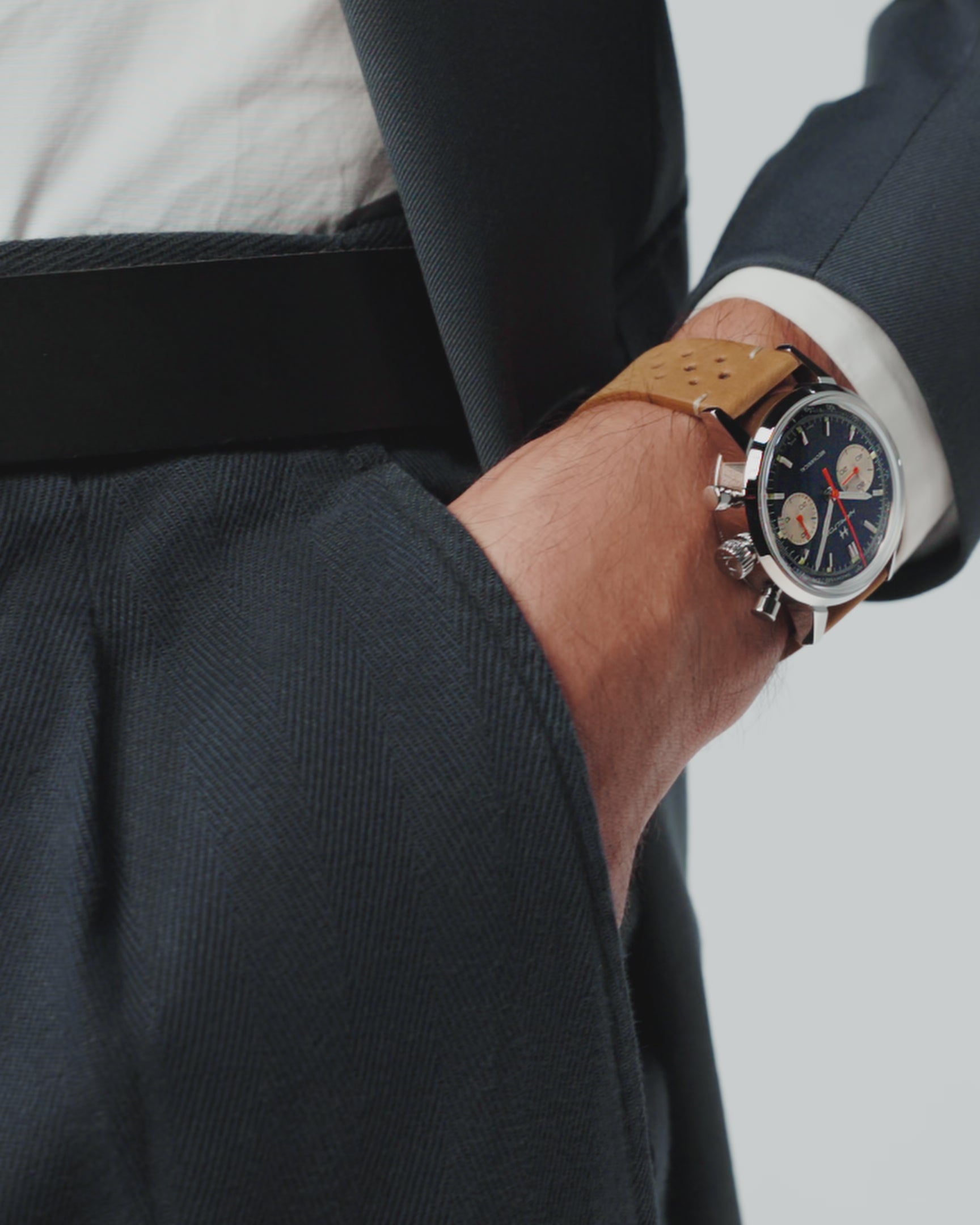 - 復古賽車愛好者: 如果你鍾情於 1960 年代的「黃金賽車年代」,這款腕錶的穿孔皮革錶帶與煙燻錶盤,能精準還原當年的賽道熱血情懷。