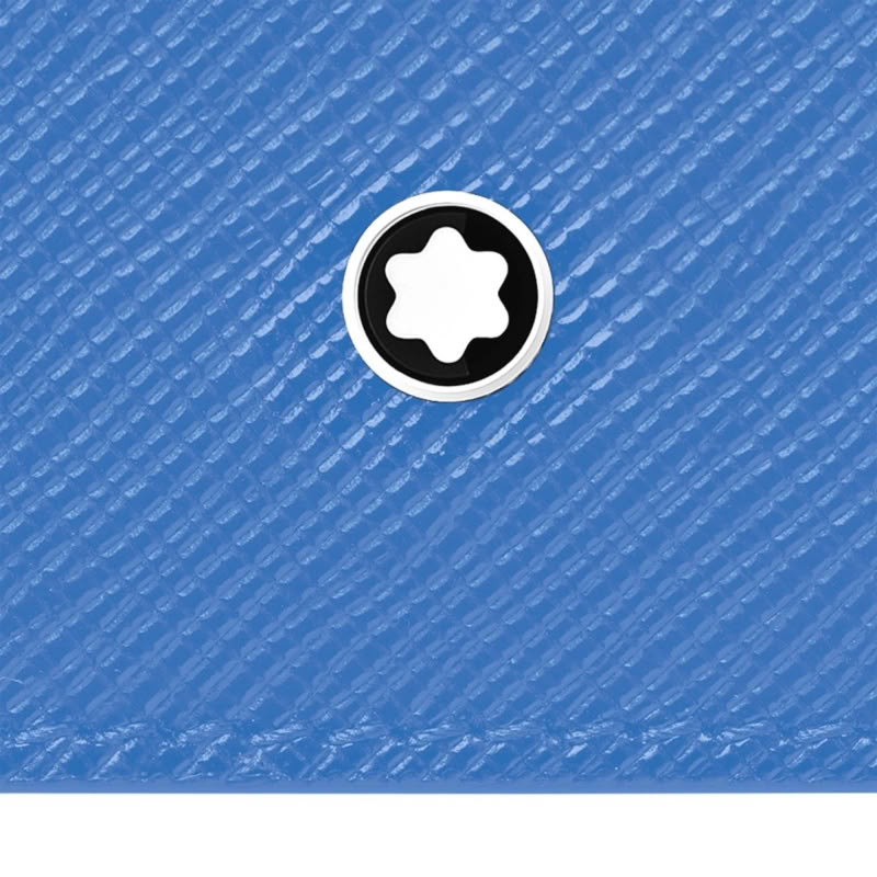 這款卡夾由奢華的 Saffiano 淺藍皮革製成,為日常生活增添了時尚色彩。它的空間最多可容納 5 張信用卡,助您在旅途中保管您的重要物件。正面飾有萬寶龍標誌。